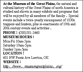 Visitors can enjoy family fun in all the museums except the Museum of the Great Plains.