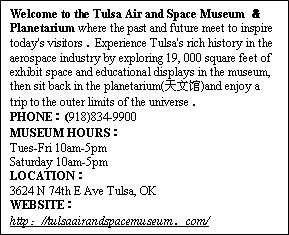 Visitors can experience something related to culture in the Tulsa Air and Space Museum.