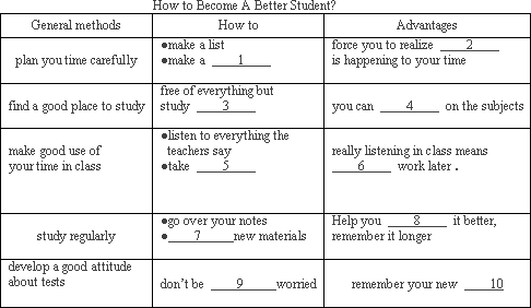 认真阅读下面短文,并根据所读内容在文章后表格中的空格里填入最恰当的单词。