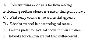 根据短文内容,从下框的A~F选项中选出能概括每一段主题的最佳选项.选项中有一项为多余项.