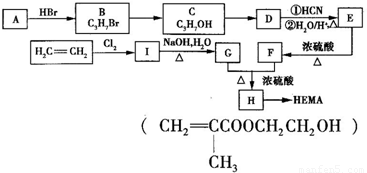 软性隐形眼镜可由聚甲基丙烯酸羟乙酯(HEMA)制成超薄镜片,其中聚甲基丙烯酸羟乙酯(HEMA)的合成路线如图所示: