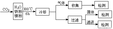 反应结束后,气体中检测到CH4和H2,滤液中检测到HCOOH,固体中检测到镍粉和Fe3O4。