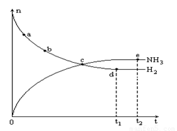 2NH3(g)+Q,673K,30MPa下n(NH3)和n(H2)随时间变化的关系如下图所示。