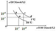 在不同温度下,水溶液中c(H+)与c(OH-)有如图所示关系。![]()
