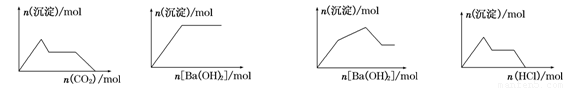 | C.KAl(SO4)2溶液中逐滴加入Ba(OH)2溶液 | D.NaAlO2溶液中逐滴加入盐酸 |