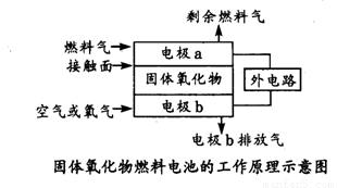 固体氧化物燃料电池(SOFC)以固体氧化物作为电解质。其工作原理如右图所示:下列关于固体燃料电池的有关说法正确的是