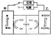 (2)混合动力车的电动机目前一般使用的是镍氢电池,镍氢电池采用镍的化合物为正极,储氢金属(以M表示)为负极,碱液(主要为KOH)为电解液.镍氢电池充放电原理示意如图,其总反应式是: