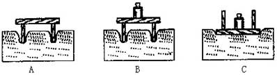 ②在凳上加一铁锤,如图B;