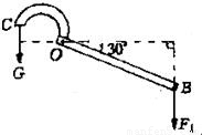 摘要:如图21所示.是一台手动小水泵的示意图.当竖直向下作用在手柄OB的力F1为40N时.水泵提起一定量的水.手柄长OB=50cm.这时它与水平面夹角为300.阻力臂长OC=14cm.求: (1)动力臂L1, (2)这时提起水的重量G. 图21