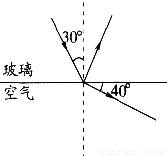 如图所示是光从空气斜射入玻璃中的光路图,由图可知,________为入射光线,________为折射光线,折射角大小是________,入射角大小是________,界面的________侧是玻璃.