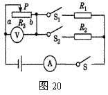 如图20所示,电源电压为12V,且保持不变,已知滑动变阻器R3的最大阻值为20Ω,定值电阻R2=15Ω,电流表的量程为0.6A。