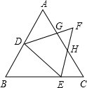 如图,已知点O是等边三角形ABC的∠BAC、∠ACB的平分线的交点,以O为顶点作∠DOE=120°,其两边分别交AB、BC于D、E,则四边形DBEO的面积与三角形ABC的面积之比是 ;