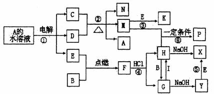 已知B、C为常见的两种金属单质,E、I为常见的两种非金属单质,反应②为D的浓溶液与C在加热条件下的反应,P溶液和G溶液中具有相同的阳离子,请根据要求回答下列问题: