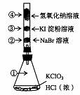 17、已知常温下氯酸钾与浓盐酸反应放出氯气,现按下图进行卤素的性质实验。玻璃管内装有分别滴有不同溶液的白色棉球,反应一段时间后,对图中指定部位颜色描述正确的是