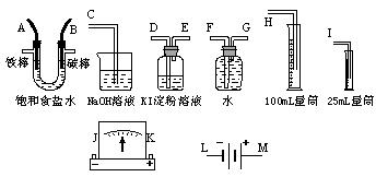 28.(本题15分)请从下图中选出必要的装置进行电解饱和食盐水的实验,要求测定产生的H2的体积(大于25 mL),并检验Cl2的氧化性。