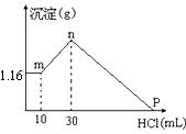 29.(本题6分)把由NaOH、AlCl3、MgCl2三种固体组成的混合物溶于足量的水中,有1.16g白色沉淀析出,向所得的浊液里,逐渐加入0.5mol/L的盐酸,加入盐酸的体积和生成沉淀的质量如图所示:
