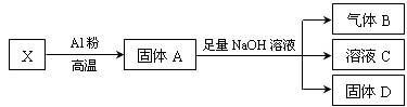 ③若已知固体X的质量为7.2 g ,反应中Al粉的质量是2.7 g,气体B在标准状况下的体积为672 mL,则固体D的质量是 g。