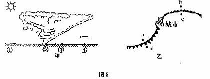 读“北北球天气系统示意图”(图8),做26-27题。