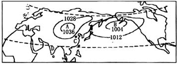 33.读“北半球1月份部分地区海平面气压线分布图”,回答下列问题。(10分)