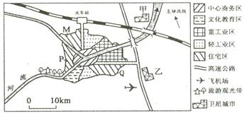 (3)拟在甲、乙两处规划建设高新技术工业城和石油化工城两座卫星城市。石油化工城应建在 处,理由是 。