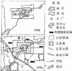 下图是某城市1966-1996年发展示意图,回答20-21题。