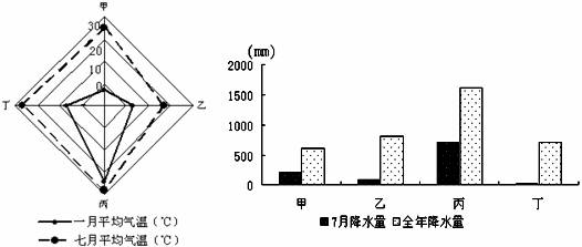 ①国土面积小于丙国 ②山区面积广大 ③干旱半干旱面积广 ④人口密度大于丙国