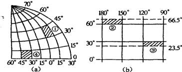 8.在下图中画斜线的四块假想陆地,面积最大的是 ( )