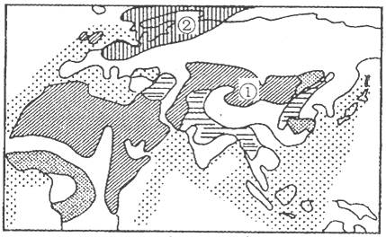 12.①、②、③、④所对应的地区中,人均耕地资源最少的是 ( )