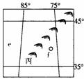 下图中,甲、乙、丙、丁表示四条著名山脉,数字为经纬度数值。读图完成20-22题。