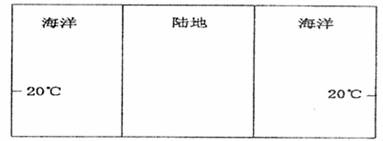 (4)请在下图中绘出指定的20℃的等温线,用来描述此时半球海陆气温分布的规律。