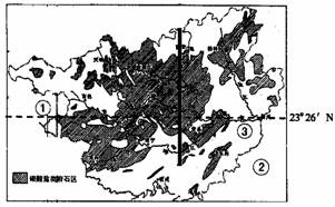图为我国某省区碳酸盐类岩石分布图,读图回答47-49题。