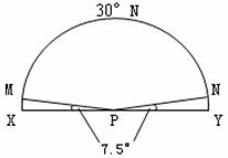 51.下图为部分30°N的纬线,P为北极点,M、N分别为晨线和昏线与30°N的纬线的交点,∠MPX=∠NPY=7.5°,PY为0°经线,此时纬度为80º纬线的某地,当地方为0时时,太阳正好位于地平线上。完成下列各题。(8分)