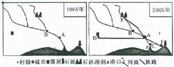 下图为某地1965年和2005年地理简图,读图回答6-7题。