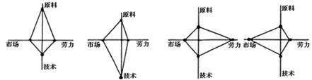下图是产业区位选择模式图,其中线段长短表示影响程度大小,回答下题: