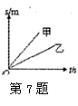 7.物体做匀速直线运动,路程与时间的关系,如图所示,甲、乙两直线分别是两运动物体的路程s和时间t关系的图象,从图可知两运动物体的速度大小关系是 ( )