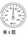 8.如图所示,是汽车上的速度计,一辆汽车以此速度从南京驶向上海,若上海距南京的距离为6.24×105m,则( )