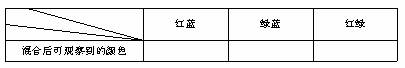 ③用同样的方法实现绿蓝、红绿两种水彩在不同比例时混合的情况.