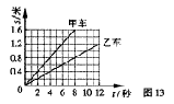 8、甲、乙两小车同时同地同方向做匀速直线运动,它们的s-t图像如图13所示。经过6秒,两车的位置关系是( )