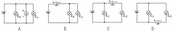 解析:本题考查电流表的连接问题,题目中明确指出要用电流表测量通过灯L2中的电流.因此,电流表应与灯L2串联.从以上四个电路图中不难看出,A图将电流表并联在电路中造成了电源短路,B图将电流表“串”在干路上,所测的是干路的电流.C图电流表与灯L2串联,接法正确.D图虽然电流表与灯L2串联,但电流表的正负接线柱接反了.故正确答案选C.