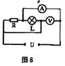 9.如图8所示电路中,电源电压和灯泡电阻保持不变,闭合开关S,将滑动变阻器的滑片P向右移动,则 ( )