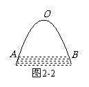 如图2-2是一抛物线形拱桥,桥下有小河,当水面在AB位置时,拱顶O离水面2米,水面宽4米. 求当水面下降1米后,水面的宽.
