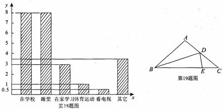 18.如图,表示某校初一学生平时一天的作息时间安排,临近期末考他又调整了自己的作息时间,准备再放弃0.5小时的睡觉时间、原运动时间的和其他活动时间的全部用于在家学习,那么现他用于在家学习的时间是____________小时.