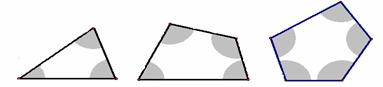 10.(2008年株洲市)如下图中每个阴影部分是以多边形各顶点为圆心,1为半径的扇形,并且所有多边形的每条边长都大于2,则第个多边形中,所有扇形面积之和是 (结果保留π).