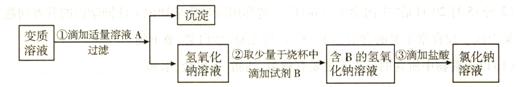 [进一步实验]小刚用变质的溶液制取不含杂质的氢氧化钠溶液,继续完成中和反应实验。他设计如下图所示的实验方案。