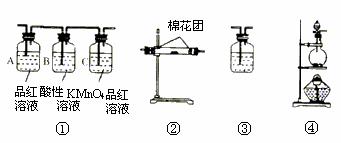 请从下图中选用所需的仪器(可重复选用)组成一套进行该反应并检出反应产物的装置。现提供浓H2SO4、木炭和酸性KMnO4溶液,其他固、液试剂自选。(连接和固定仪器用的玻璃管、胶管、铁夹、铁架台及加热装置等均略去)