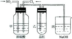 (4)第二个实验小组的同学认为SO2和Cl2水都有漂白性,二者混合后的漂白性会更强,他们将制得的SO2和Cl2同时通入到品红溶液中,结果褪色效果并不像想象的那样快。为了探讨SO2和Cl2按1:1通入的漂白效果,他们设计了如下实验装置:
