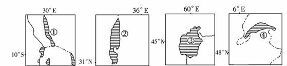 D.②湖泊位于欧洲,③湖泊位于亚洲