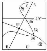 23.(12分)读某区域图,AB为晨昏线,甲地常年受西风带影响,此时甲地刚好看到日落,流经甲地的河流注入某大洋。回答下列问题。