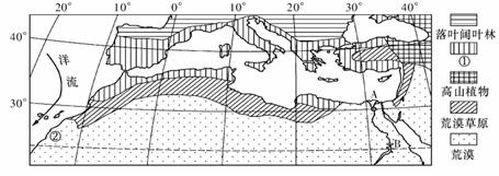 (1)图中植被栙表示 ,这类植被分布地区出产优质葡萄,主要自然原因是 。(6分)