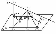 证明 如图,连结MN、NR,则MN∥l1,NR∥l2,且M、N、R不在同一直线上(否则,根据三线平行公理,知l1∥l2与条件矛盾).∴ MN、NR可确定平面β,连结B1C2,取其中点S.连RS、ST,则RS∥l2,又RN∥l2,∴ N、R、S三点共线.即有S∈β,又ST∥l1,MN∥l1,∴MN∥ST,又S∈β,∴ STβ.